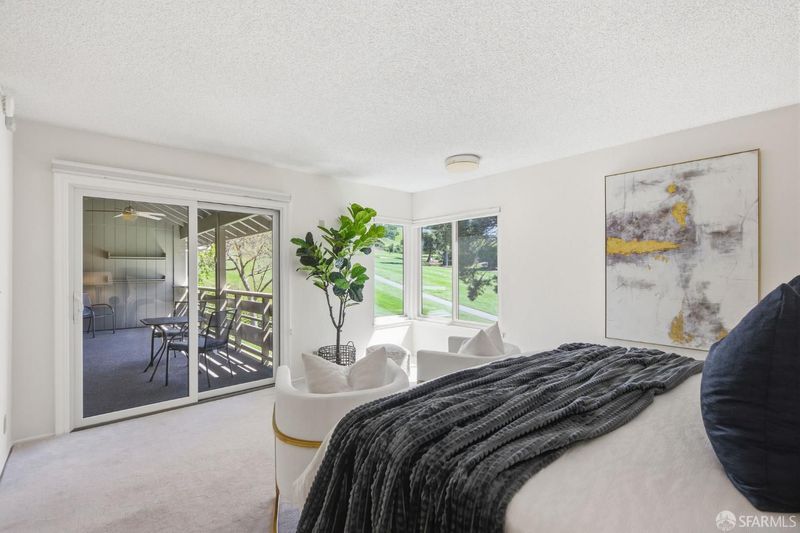 Act now and tour this upper level, Sierra condo in Rossmoor's 55+ active community! 3136 Rossmoor Parkway #5 (Entry 1) is a two bedroom, two bathroom home of 1,444 sq. ft. with functional floor plan and views of Dollar Ranch's golf fairway #3. The vaulted ceiling and a double-wide hall closet lend a sense of scale to the living room, which flows naturally into the dining area framed by a picture window and energy-efficient plantation shutters. The updated kitchen is top-notch, outfitted with custom cabinetry, a styled backsplash, composite countertops, and stainless steel appliances. Enjoy meals at the breakfast bar or sip morning coffee on the private balcony. Venture to the other side of the home and discover a guest bedroom, modern bathroom with shower/tub combo, and a laundry room with utility sink. Tucked in the corner to maximize views, the primary suite serves as a haven, featuring a walk-in custom closet and ensuite bathroom with curbless shower. Convenience is key with two additional storage closets located in the adjacent carport #112 and nearby guest parking. This unit is closely located to the Creekside Clubhouse and future home of The Golden Pear Restaurant as well as the Dollar Clubhouse/Pool and Event Center. GRF and HOA memberships give Rossmoor residents access to diverse amenities: golf, pools, fitness center, dining, clubhouses, event center, theater, library, tennis, pickleball, bocce, lawn bowling, hiking, art studios, interest clubs, gated security, landscaping, and a seasonal farmers market.