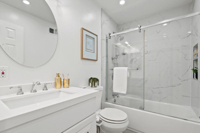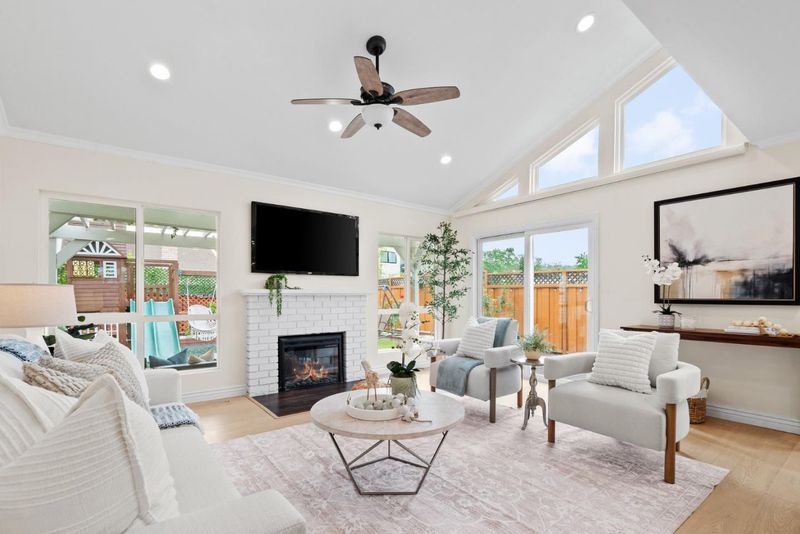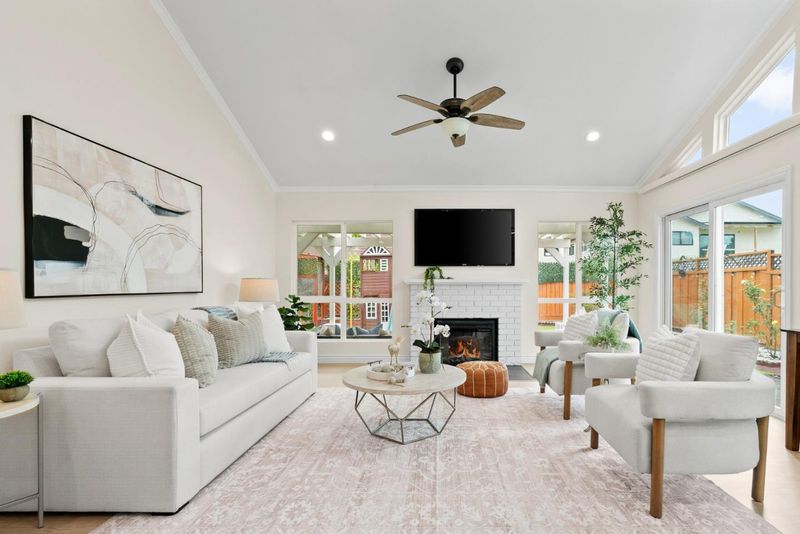 Welcome to your new home! This beautifully updated property is tucked away on a quiet court and filled with natural light, has an open concept floor plan and feels like new construction. The home also features a separate backyard cottage (not included in the total square footage), perfect for a home office, gym, or playroom, in addition to the home's four interior bedrooms. When you walk in you'll notice cathedral ceilings, a dramatic wall of windows and modern hardwood flooring throughout. The fully remodeled kitchen offers quartz countertops, slate appliances, a stand alone island and plenty of space to gather and entertain, with 2 sliding glass doors pouring into the backyard. Spa inspired bathrooms add a luxurious feel. The permitted 4th bedroom provides extra flexibility, while the primary suite features two closets for abundant storage. Owned solar and a finished attached two car garage add convenience and value. Outside, the incredible front yard offers multiple sitting areas, a rose garden, mature fruit trees, and a covered BBQ patio. The spacious backyard includes a pergola, play structure and plenty of extra storage space. Great schools, shopping, easy highway access and nearby parks and walking trails! This home is a 10 out of 10, you will not be disappointed!