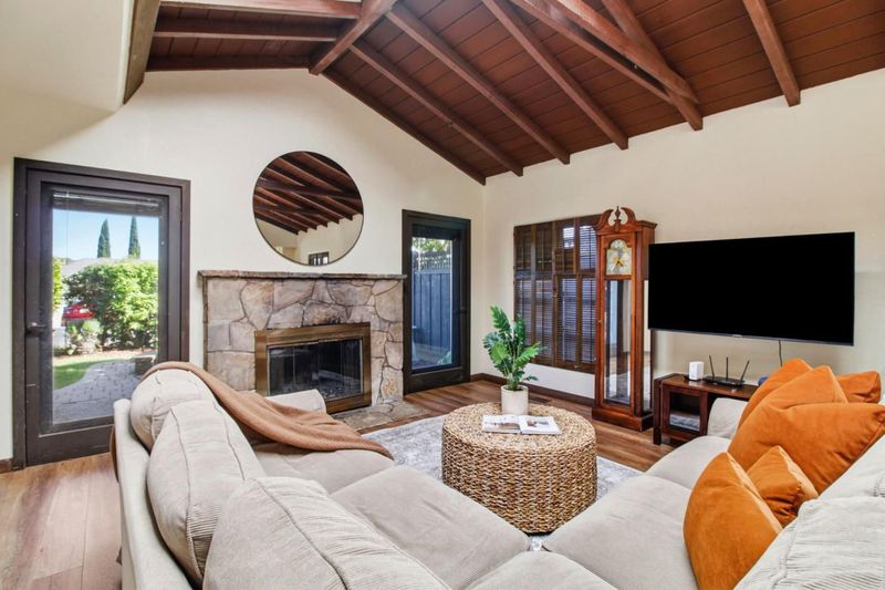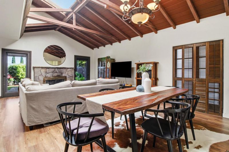 This lovely home sits on a corner lot and welcomes you with a lush private courtyard entry. Featuring 4 bedrooms, 2 baths on two levels, this home offers dramatic vaulted open beam ceilings with an open concept. The main level features an expansive living room, dining area and kitchen. The kitchen has been elegantly renovated and offers granite counter tops, a gas range, stainless steel appliances and access to a deck, making it the perfect place to start your day. There are 2 bedrooms on the main level. One of them has the laundry in it and is ideal for a home office or gym. The other 2 bedrooms, including the primary, are located on the upper level have access to the shared bathroom that features a dual vanity. The bathroom on the lower level has been elegantly updated. The outdoor space offers a fire pit, a lush lawn, and a built in outdoor kitchen with a sink that has hot and cold water, BBQ and Gazebo, making the space perfect for al fresco dining and gatherings. Centrally located on the Peninsula, this home offers convenient access to shopping, dining, sought after schools and major commute routes. square footage is provided by seller from floor plans,different records show different sq footage numbers.Buyers to investigate to their satisfaction prior to making an offer.