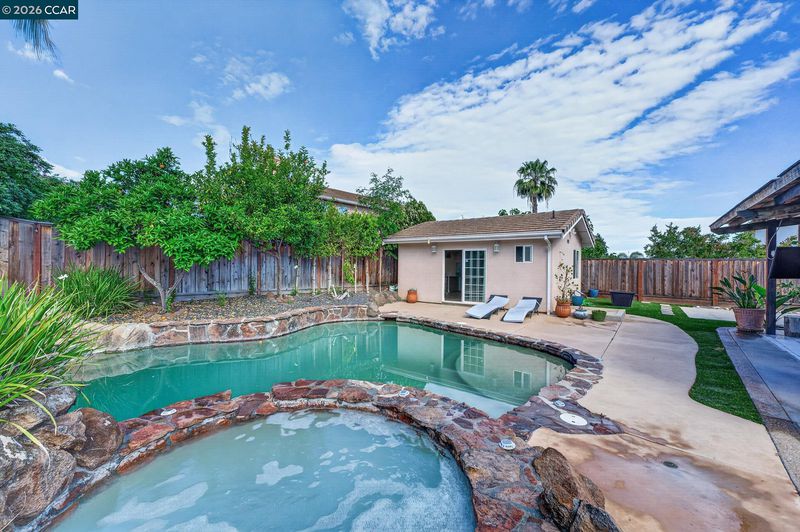 Beautiful two-story home located in a desirable Antioch neighborhood! This spacious property offers approximately 2,375 sq ft of living space with 4 bedrooms and multiple bathrooms, designed for comfortable living and entertaining. The home features an open floor plan with a beautifully updated kitchen showcasing quartz countertops, a large island, and ample cabinetry that flows seamlessly into the main living areas. Step outside to your own private backyard retreat featuring a sparkling pool and spa, perfect for relaxing or hosting gatherings. The backyard also includes mature fruit trees and plenty of space to enjoy outdoor living. A detached ADU/pool house provides additional flexibility for guests, extended family, or potential rental income. Additional highlights include paid-off solar for energy efficiency, RV parking, and spacious living areas. Conveniently located near parks, shopping, dining, and commuter routes, this property offers the perfect blend of comfort, versatility, and resort-style living.
